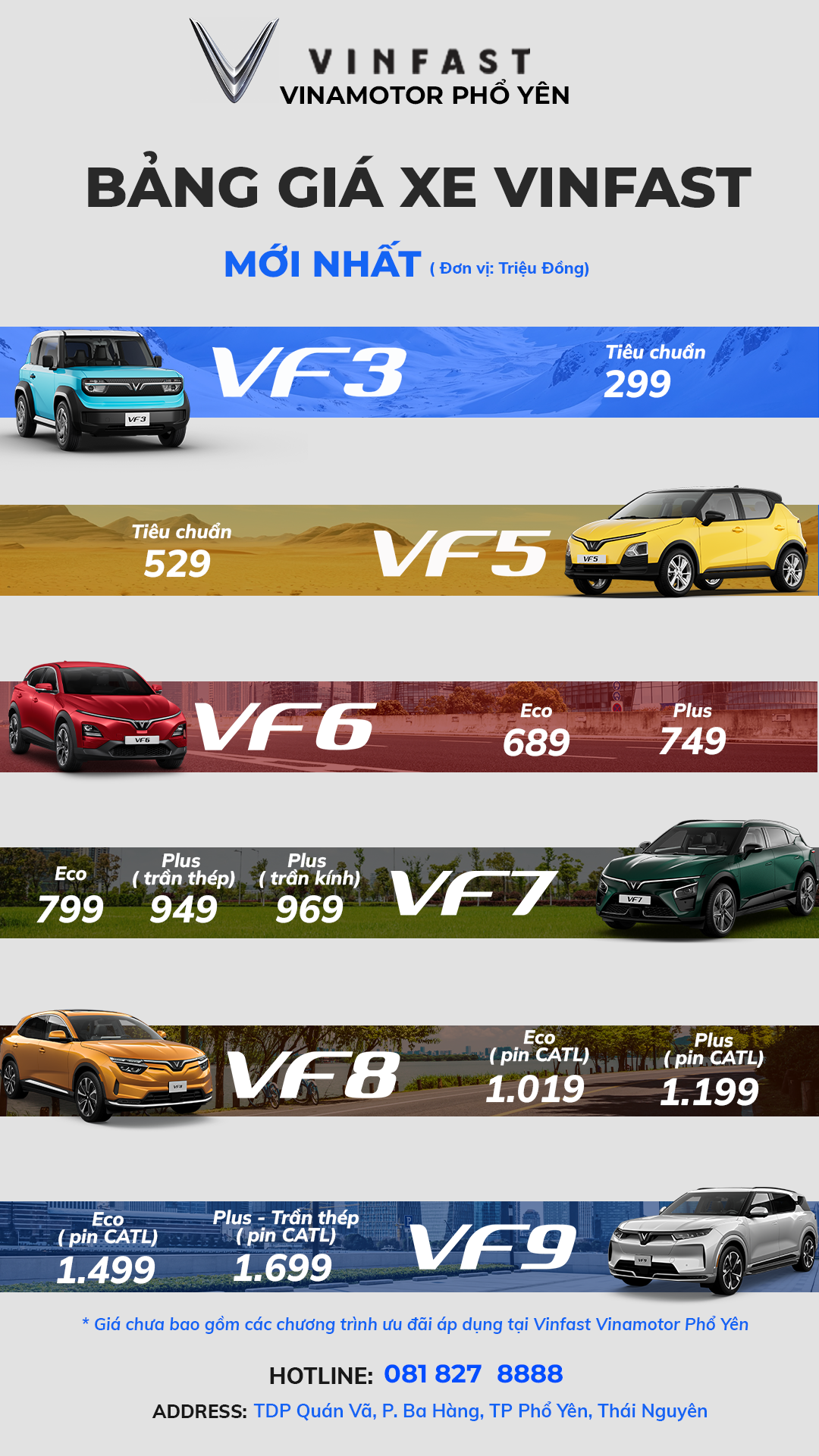 VinFast Phổ Yên áp dụng mức ưu đãi 4% cho toàn thể khách hàng khi mua xe ô tô và xe máy điện VinFast.